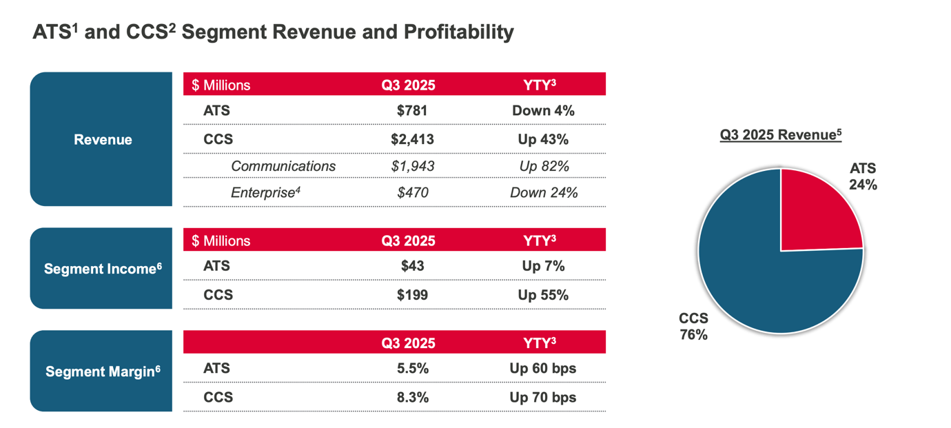 Il segmento CCS traina la crescita dei ricavi e la leva operativa, mentre ATS garantisce stabilità dei margini e visibilità.