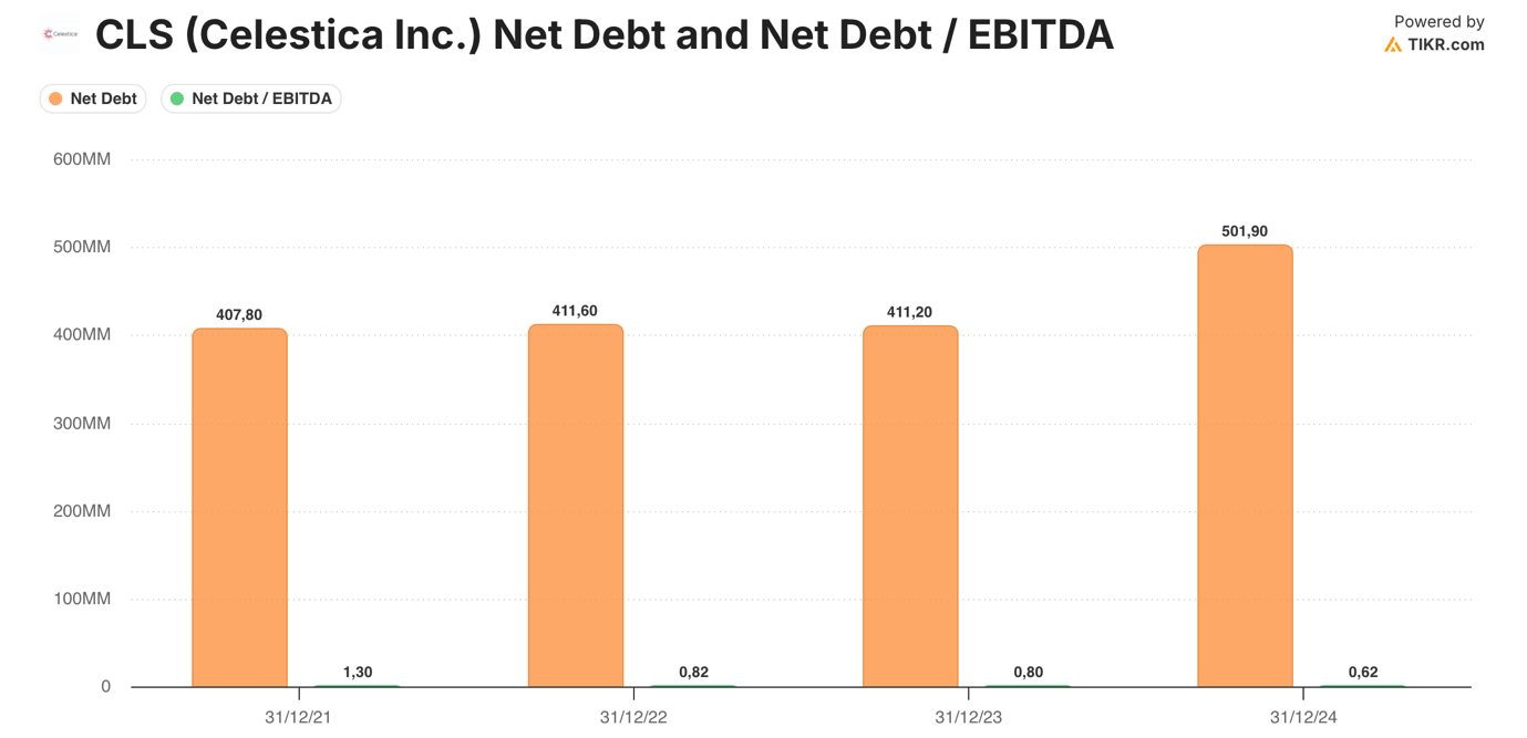 Dal punto di vista patrimoniale, Celestica opera oggi con un profilo di rischio finanziario che appare ben controllato e in progressivo miglioramento, nonostante la natura ad alta intensità di capitale della sua crescita guidata dall’IA. Al termine dell’anno fiscale 2024, la società ha generato un EBITDA di circa 766 milioni di dollari canadesi su ricavi di 9,6 miliardi, fornendo una solida base di utili su cui valutare la leva finanziaria e la sostenibilità dei flussi di cassa.