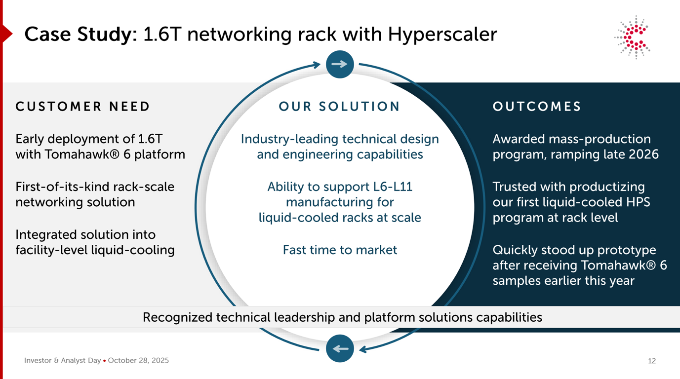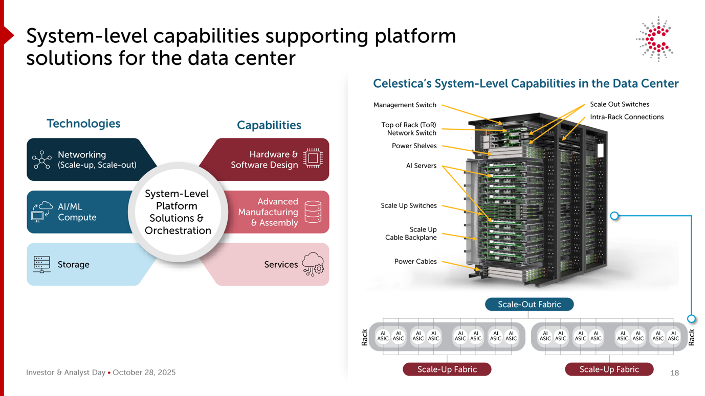 Questo scenario ha favorito sensibilmente i partner produttivi in grado di realizzare su vasta scala soluzioni di networking ad alta velocità, sistemi di calcolo avanzati e integrazione a livello di sistema. Il segmento Connectivity & Cloud Solutions (CCS) di Celestica si colloca esattamente in questo punto di incontro, beneficiando della maggiore spesa degli hyperscaler in piattaforme di networking ottimizzate per l’IA e infrastrutture server.